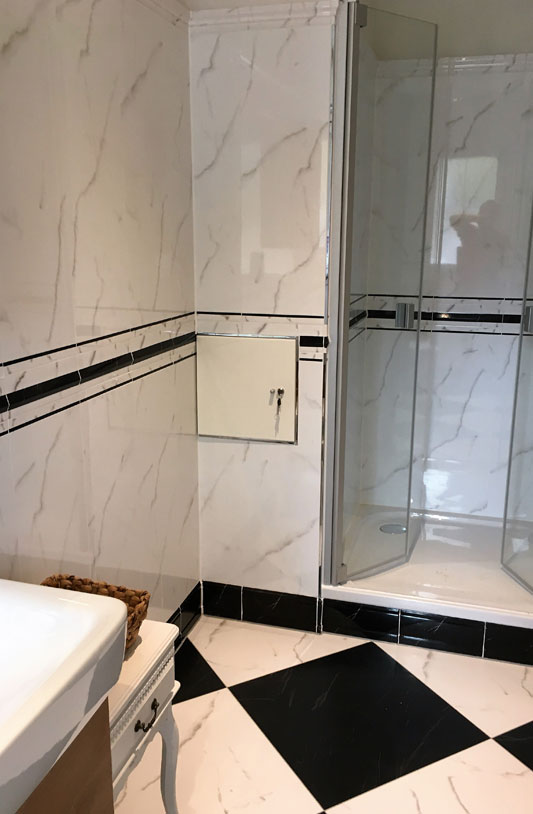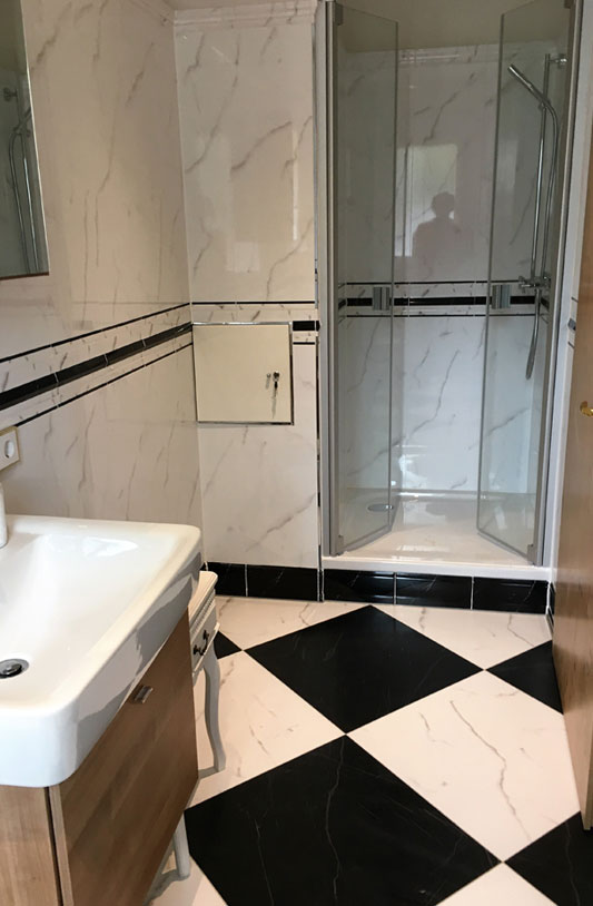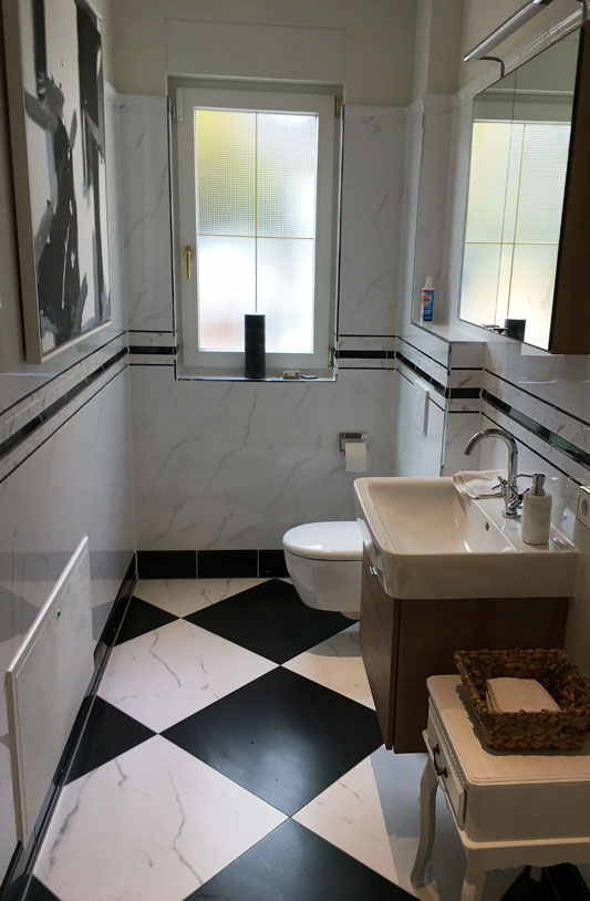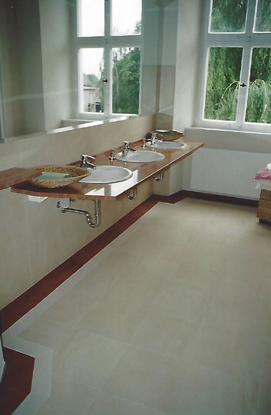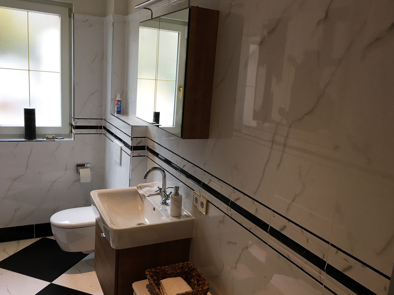 - Verlegung von großformatigen Wand- und Bodenfliesen