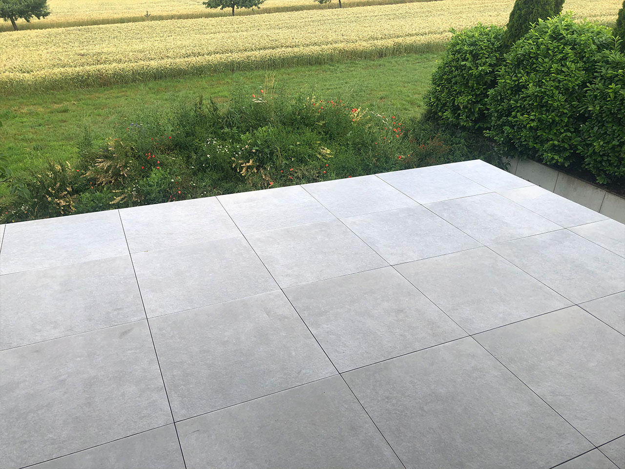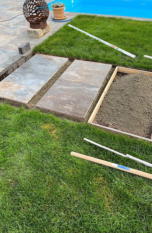 - Verlegung von Fliesen, Platten, Mosaik und Naturstein im Außenbereich
